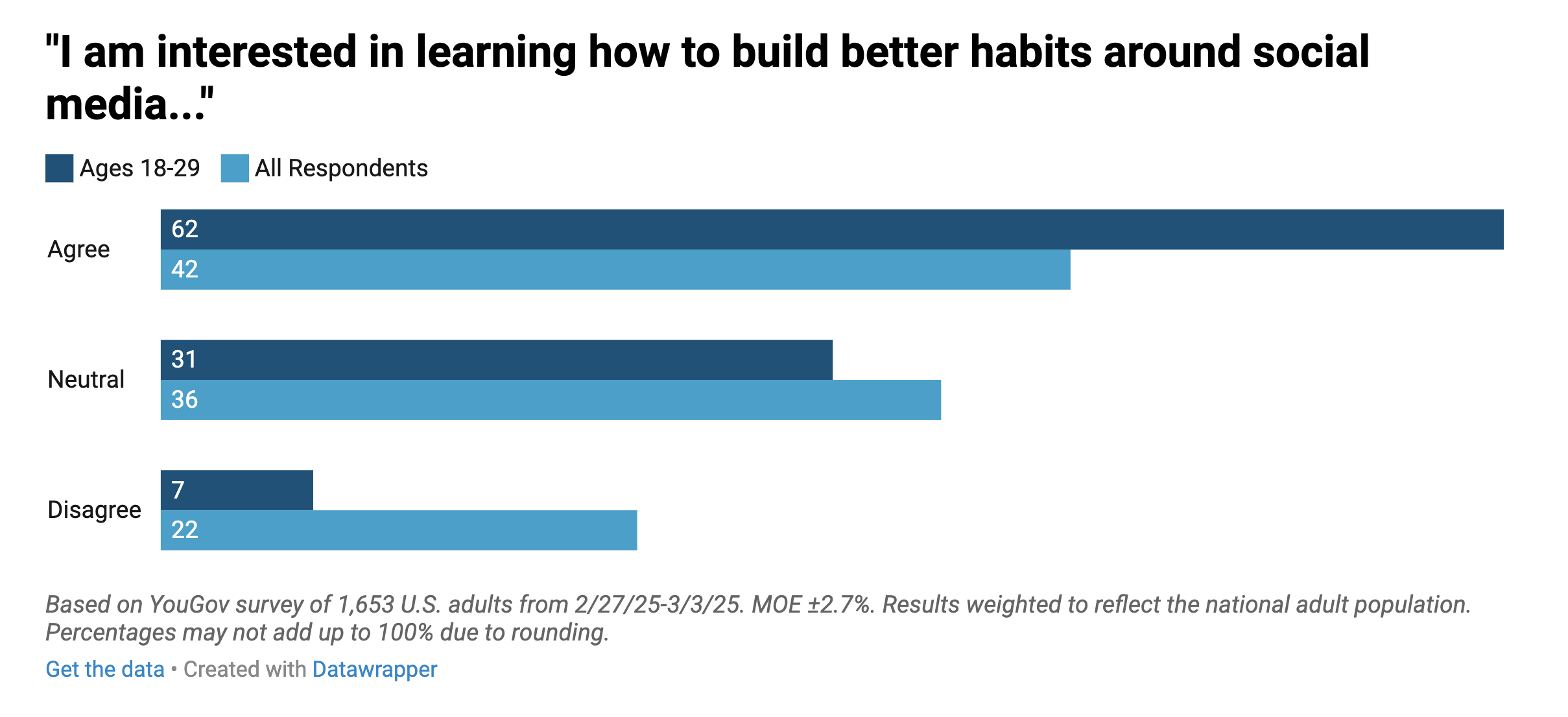 More than three in five (62%) young adults expressed interest in learning how to build better habits around their social media usage, compared to 42% of the general population.
